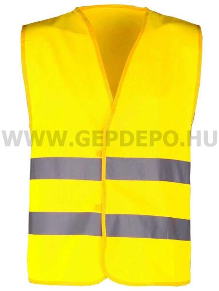 Klasszikus jól láthatósági mellény, fényvisszaverő csíkokkal, tépőzárral. Ajánljuk: Közúti, vasúti vagy építőipari munkákhoz, hétköznapi használatra is, akár bicikliseknek kiváló választás ez a jól láthatósági mellény. Méret: 4XL-5XL Tulajdonságai: Fluo sárga jól láthatósági mellény. 2 fényvisszaverő csík. Tépőzáras. Feliratozható. Bő kialakítása m