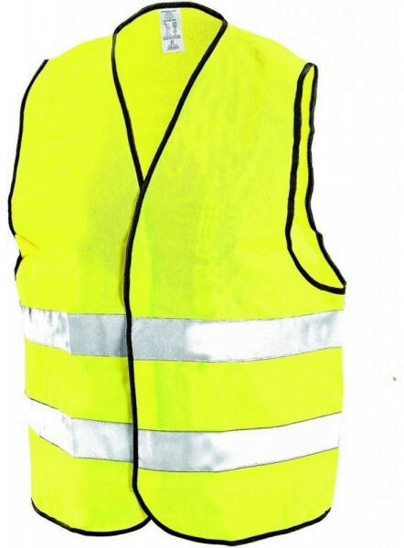 Jól láthatósági mellény A magas láthatóságú mellény horizontális fényvisszaverő csíkokkal rendelkezik, amelyek biztosítják a biztonságosabb közlekedést sötétben vagy rossz időjárási körülmények között. A mellény velcro rögzítéssel rendelkezik, könnyen és gyorsan fel- és levehető. Anyaga 100% poliészter, 120 g/m2, és megfelel az EN ISO 20471-es szabványnak. M