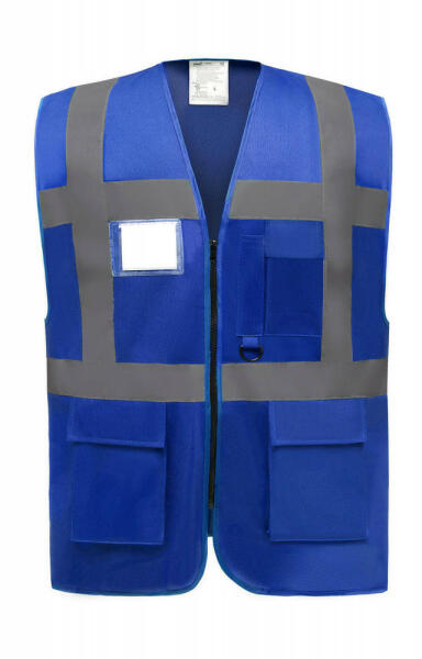 Uniszex ujjatlan Biztonsági mellény munkaruha Yoko Fluo Executive Waistcoat 3XL, Királykék Leírás: 125 g/m2 100% poliészter védőmellény vízszintes és függőleges fényvisszaverő csíkkal elöl és hátul tépőzáras mobiltartó zseb kulcs- és igazolvány tartó a mellrészen két tépőzáras oldalzseb cipzárral záródik. Figyelem! (Az anyag magas hőfokon hamarabb amortizálódi