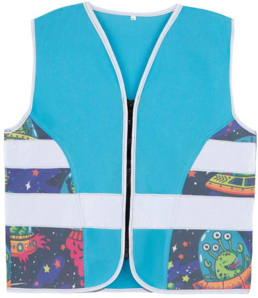CHILDREN’S SAFETY VEST (CO2 NEUTRAL) - ACTION Motives: Sports, Aerospace, Fantasy Certified according to EN 17353:2020 Type B3 (Alien, Construction, Plane, Monster truck, Knight, Road Works, Tractor) Certified according EN 17353:2020 Type AB3 (Soccer, Ice Hockey, T-Rex, Brachiosaur, UFO, Unicorn) High visibility due to patterned fabric with reflective coating and reflective strips Lightweight 10