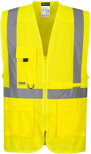 Vezetői mellény gyártó: Portwest cikkszáma: S476 A termék megfelel az EN 471 Class 2:2 szabványnak Forradalmi dizájn, egyedi praktikus megoldásokkal. Többfunkciós zsebek, azonosító kártyatartó zseb, cipzáros záródás, mobiltelefon tartó zseb. A Portwest S476 Vezetői mellény mobiltartó zsebbel, nagy méretű zsebekkel és igazolványtartóval készül. Rádió huroknak köszö