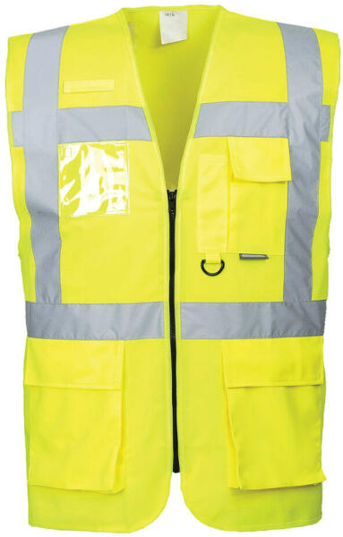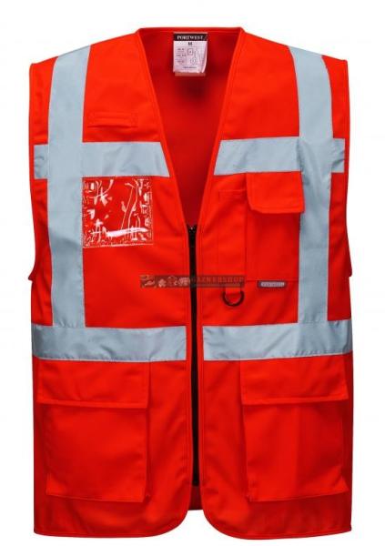 Portwest S476 Jól láthatósági vezetői mellény Forradalmi design, egyedi praktikus megoldásokkal. Könnyen hozzáférhető elülső cipzárnyílás 7 sokoldalú, praktikus tárolózsebbel Két kisebb zseb Telefon és tolltartó zseb Dupla azonosító tartó, mely lehetővé teszi álló és fekvő tájolású kártya elhelyezését Rádióhurok a rádió egyszerű rögzítéséhez D gyűrű