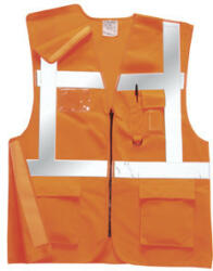 RT26 JÓL LÁTHATÓSÁGI VEZETŐI MELLÉNY VASÚTI DOLGOZÓK RÉSZÉRE EU szabvány: EN471 Anyag: 100% poliészter Leírás: - Forradalmi dizájn - egyedi paraktikus megoldásokkal - Többfunkciós zsebek - azonosítókártyatartó zseb - zippzáros záródás - mobiltelefontartó zseb