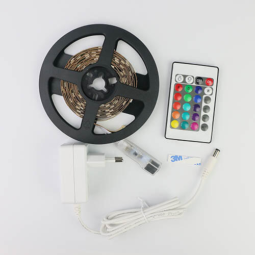 RGB Led szalag csomag, 3 méter Led szalag, 24 gombos infrás vezérlő, 1,5A tápegység, minden benne, azonnal működik! Fehér alapon, 30 Led/ méter, 10 mm széles, 5050 méretű smd Leddel szerelve. Ez a típusú Led szalag flexibilis, 3 Ledenként darabolható, sokoldalú felhasználási területtel! A Led szalag kiválóan alkalmas rejtett világításhoz, reklámvilágításhoz, konyhapul