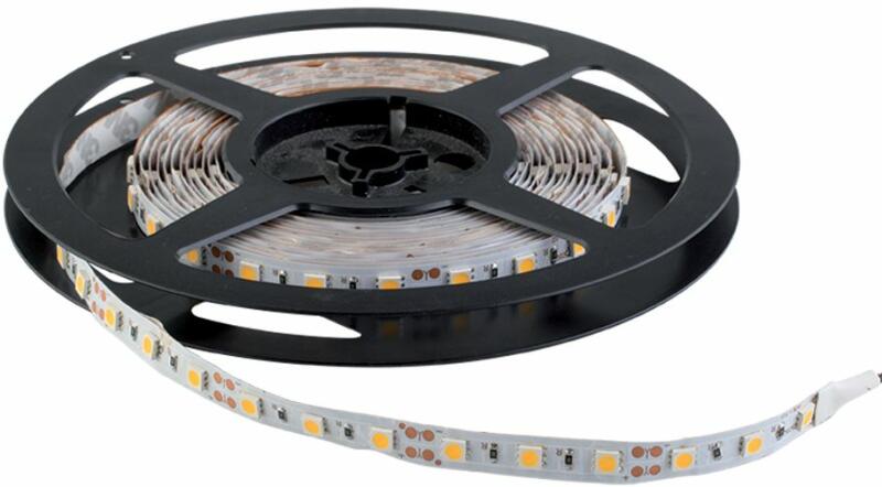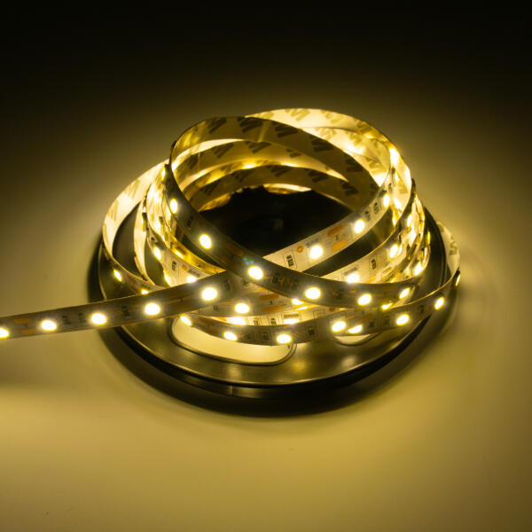 5 méteres tekercsben (50 milliméterenként vágható) LED lapka típusa: 5050 SMD LED-ek száma: 60 db/méter Teljesítmény: 14,4 W/méter Fényerő: 10-12 lm/LED Színhőmérséklet: 2700 - 3000K (meleg fehér) Sugárzási szög: 120° Védettség: IP20 (beltéri) Élettartam: 15 000 óra Rögzítés: 3M tapadószalag 12V DC CE RoHS EMC és LVD tanúsítvánnyal rendelkező termék.