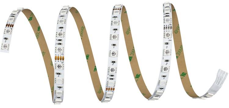 OSRAM által forgalmazott RADIUM RGB LED szalag. Beltéri IP20 védettség. 24V működtető feszültség, 17W/m fogyasztás 86db RGB LED méterenként 4970mm tekercs hossz, LED szalag szélesség 10mm