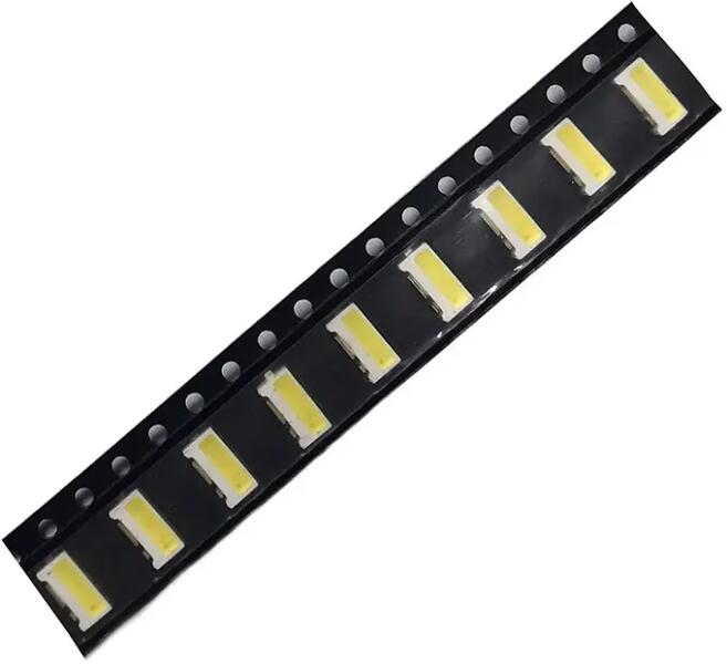 Szuperfényes LED- 7032 fénykibocsátó dióda, fehér fényű, 6V. TV LCD panelek megvilágítására alkalmazzák. TV Samsung UExxESxxx sorozathoz. 7032 SMD LED fehér: Fehér szín Lencse: Sárga szórt Csomagolás (H/Sz/Ma): 7,0 × 3,27 × 1,3 mm Színfrekvencia: 12000K (hideg fehér) Fényerősség: 210mcd Betekintési szög: 120° Előre feszültség: 5,8V - 6,0V Tipikus előremenő áram: