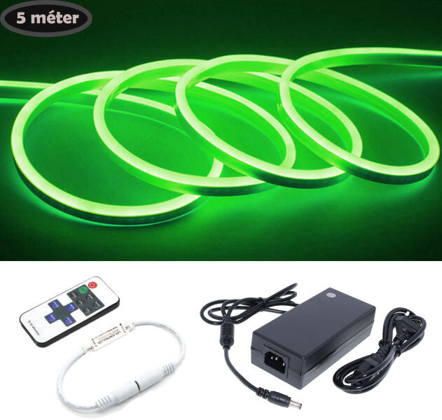 5 Méter Zöld LED Neon Flex Komplett Szett Távirányítóval 12V