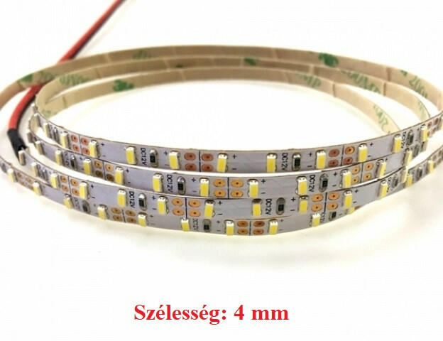 Extra vékony LED szalag, mely kis helyen is elfér. Kis mérete ellenére, igen erős fényt tud biztosítani!Dekorosok egyik legkedveltebb terméke. Beltéri led szalag 120 db 120 fokos megvilágítási szögű SMD leddel, mely 3 ledenként darabolható. Egyedileg gyártott, 4 mm széles kialakításának köszönhetően rendkívül keskeny helyeken is alkalmazható. Kiválóan alkalmas minden n