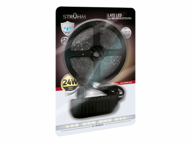 Strühm Late Led Led szalag szett dekoratív termék. Megvásárolható meleg fehér, hideg fehér és natúr fehér színben. Vízálló led szalag, vízvédettsége IP65. A termék magassága 2 mm, hossza 5000 mm és szélessége 8 mm. Vágása 3 ledenként lehetséges. Fogyasztás / m 24 W. Vízállósági szint IP65 LEDek száma/méter 60 LED. Szélesség 8 mm. Fényerő / m 2100 lumen. LEDek