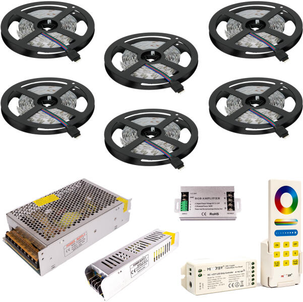 30 Méter LED Szalag Szett Beltéri RGB Színes 5050 60 LED/M Mi-Light Controlled
