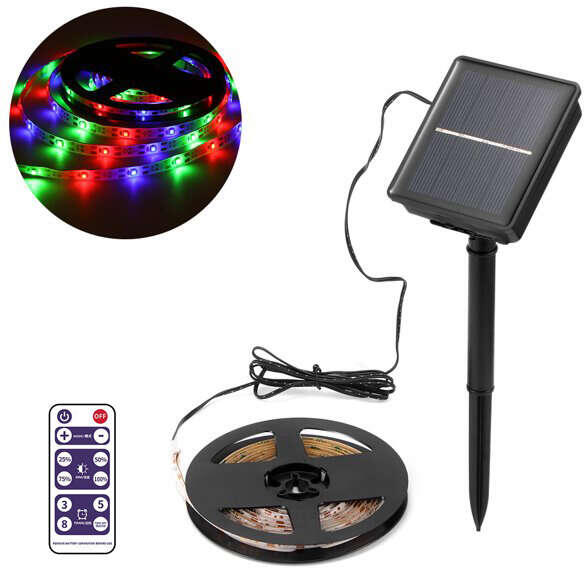 A csomag tartalma: - 1 db LED szalag - 1 db Napelemes egység - Tiplik, csavarok - 1 db Leszúrófej (földbe való leszúráshoz)Nincs szükség elemekre a kertben épűletek tárgyak feldíszítéséhez. A napelemes LED szalag nappal feltölti a beépített akkumulárorát és akár egész este automatikusan világít. A napelem hátoldalán egy kapcsolóval kiválaszthatjuk, hogy villogva vagy