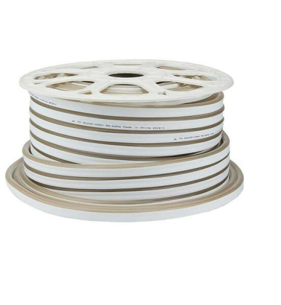 Watt8,5W/mBemeneti feszültségAC: 220VFényáram425 lm/mCRI Színvisszaadás>80VizállóságIP44Üze móra25000 óraVilágítási Szög120°Méretekф50000x16x10mmOpto nica Flexibilis LED Neon szalag 50m-es tekercsben. A kis méretű, hajlékony LED fénysorok jellemzően a gipszkarton álmennyezetek és habkönnyű díszlécek nútjába fektetett hangulatvilágítások és rejtett világítá