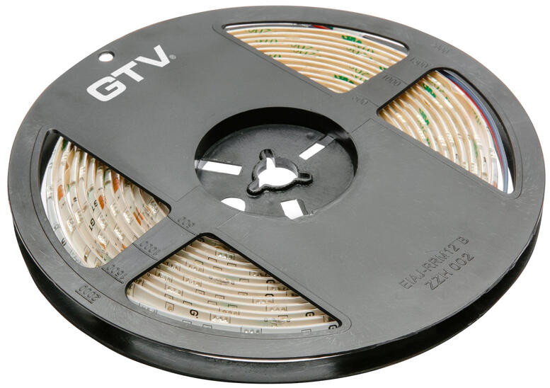 GTV RGB LED szalag, LED FLASH RGB technológia, SMD5630, IP65, 30LED/m, 7,2W/m, 450lm/m, 10mm széles (GTV-LD-RGB-150-65) Termékinformáció: Teljesítmény: 7,2W/m Fényáram: 450lm/m Sugárzási szög: 120°