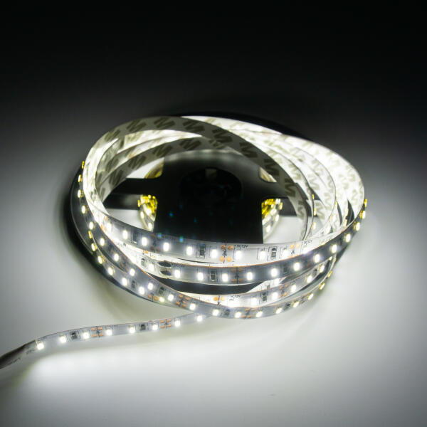 A legerősebb 2835 chippel szerelt /7-8 lumen/chip/ led szalag. 4200 kelvin, közép fehér fényű IP65, vízálló / mosható, fröccsenő víz érheti!/ led szalag fehér alapon, 60 Led/ méter, 8 mm széles. Ez a típusú Led szalag flexibilis, 3 Ledenként darabolható, sokoldalú felhasználási területtel! A Led szalag kiválóan alkalmas rejtett világításhoz, reklámvilágításhoz, ko