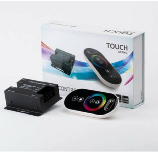 Az egyik legnagyobb tudású RGB vezérlő rádiós vezérléssel, mellyel akár 20 méteres szalagot is működtethet. Érintésérzékeny felülete garantálja a pontos vezérlést. Segítségével a változtatható színű RGB LED szalagok vezérlése könnyedén megoldható, a ki- és bekapcsolás, fényerősség állítás, valamint a sebességállítás mellett 18 fényprogrammal is rendelke