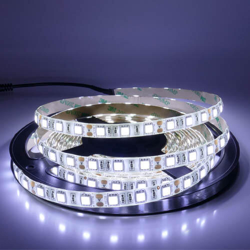 Hideg fehér fényű IP65, vízálló / mosható, fröccsenő víz érheti!/ led szalag fehér alapon, 60 Led/ méter, 10 mm széles, 5050 méretű smd Leddel szerelve. Ez a típusú Led szalag flexibilis, 3 Ledenként darabolható, sokoldalú felhasználási területtel! A Led szalag kiválóan alkalmas rejtett világításhoz, reklámvilágításhoz, konyhapultok, képek, üveg vitrinek, kirakat