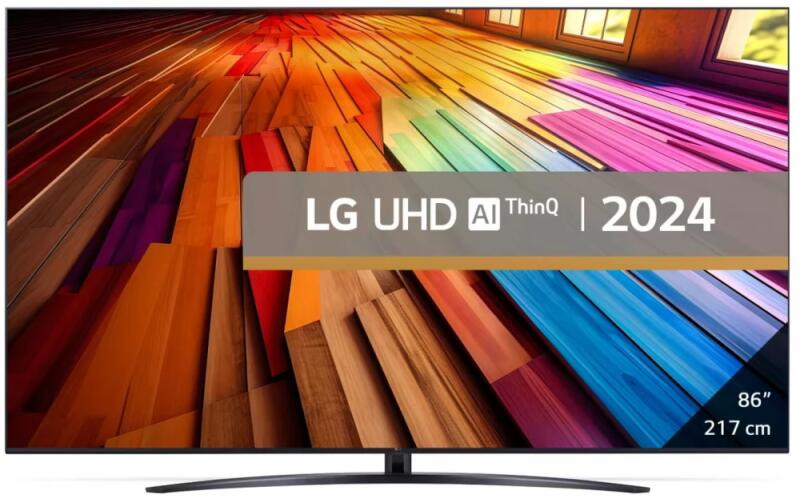 LG UT81003LA típusú 86-es Fekete színű televízió 3840 x 2160 4K UHD felbontással.