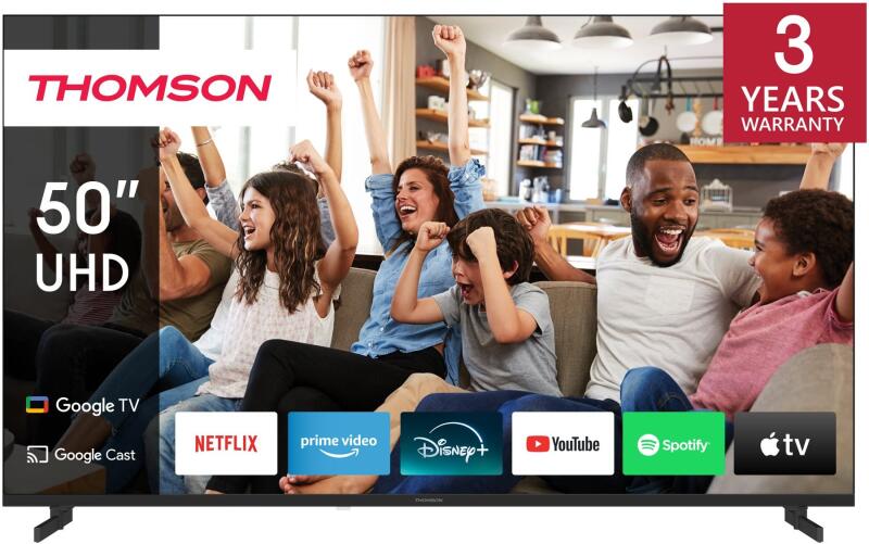 Televízió - Google TV, LED, 191 cm-es képátló, 4K Ultra HD, 50 / 60 Hz, DVB-T2/C, 3× HDMI, 2× USB, CI+, LAN, WiFi, Bluetooth, hangvezérlés, Google Assistant, VESA 300×300, Dolby Audio, G energiaosztály