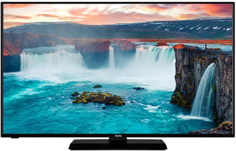 Vestel ND65H01 típusú, fekete színű, 65" méretű 4k UHD okostévé hotel tv szolgáltatásokkal, üzleti célú felhasználásra.