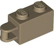 LEGO Alkatrészek 34816c69 - LEGO sötét krémszínű kocka 1 x 2 méretű, fogantyúval a rövid oldalon. LEGO Építési útmutató kódszám: 6310836