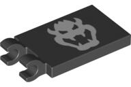 LEGO Alkatrészek 30350bpb111c11 - LEGO fekete csempe két vastag klipsszel az oldalán, fehér Bowser fej mintával. LEGO Építési útmutató kódszám: 6369098