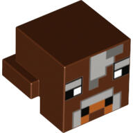 LEGO Alkatrészek 19727pb003c88 - LEGO vörösesbarna szögletes állatfej fekete és szürke téglalap mintával. LEGO Építési útmutató kódszám: 6162517