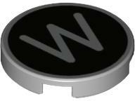 LEGO Alkatrészek 14769pb444c86 - LEGO világosszürke csempe 2 x 2 méretű, fekete háttéren, ezüst W betű mintával. LEGO Építési útmutató kódszám: 6352976