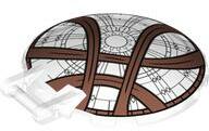 LEGO Alkatrészek 18675pb22c12 - LEGO átlátszó tányér 6 x 6 méretű, inverz (radar) bütyök nélkül, fogantyúval, Sanctum Sanctorum tetőablak mintával. LEGO Építési útmutató kódszám: 6366560