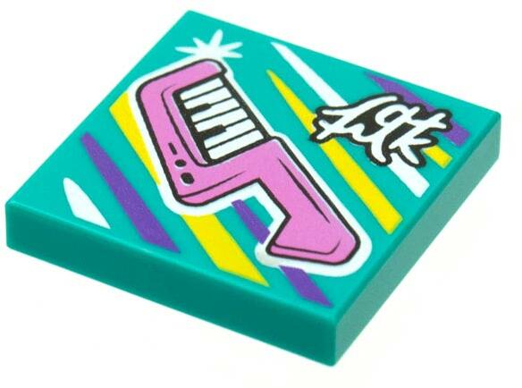 LEGO Alkatrészek 3068bpb1641c39 - LEGO sötét türkiz csempe 2 x 2 méretű, gitár szintetizátor mintával.