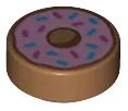 LEGO Alkatrészek 98138pb182c150 - LEGO közepesen sötét bőrszínű csempe 1 x 1 méretű, kerek, világos rózsaszín fánk mintával. LEGO Építési útmutató kódszám: 6329593