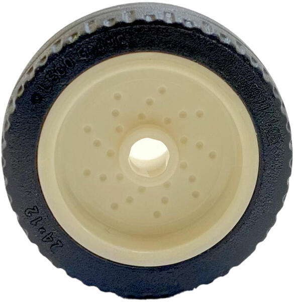 LEGO Alkatrészek 66727c01c1 - LEGO fehér 18mm átm. x 12mm méretű pöttyös felni és fekete 24mm x 12mm méretű abroncs.