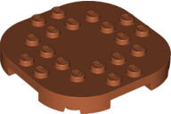 LEGO Alkatrészek 66789c68 - LEGO sötét narancssárga lap 6 x 6 méretű, lekerekített sarkokkal, négy lábbal. LEGO Építési útmutató kódszám: 6301632