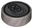 LEGO Alkatrészek 98138pb033c95 - LEGO matt ezüst csempe 1 x 1 méretű, kerek, dobozos üdítő tető mutató mintával. LEGO Építési útmutató kódszám: 6117400