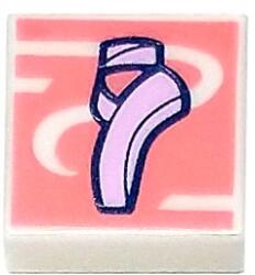 LEGO Alkatrészek 3070bpb244c1 - LEGO fehér csempe 1 x 1 méretű, rózsaszín balettcipő mintával