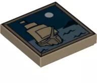 LEGO Alkatrészek 3068bpb0408c69 - LEGO sötét krémszínű csempe 2 x 2 méretű vitorláshajó és hold mintával. LEGO Építési útmutató kódszám: 4633881