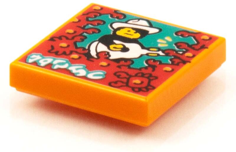 LEGO Alkatrészek 3068bpb1549c4 - LEGO narancssárga csempe 2 x 2 méretű, rákokkal gitározó cowboy mintával.