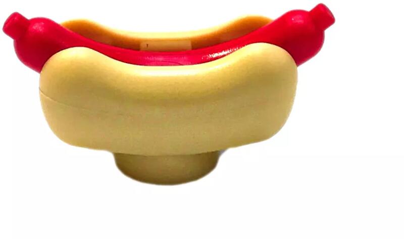 LEGO Alkatrészek 25386c233078c5 - LEGO világos krémszínű (tan) hot dog zsemle piros hot dog kolbásszal