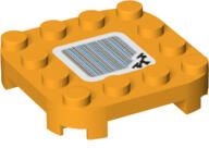 LEGO Alkatrészek 66792pb006c110 - LEGO élénk világos narancssárga lap 4 x 4 méretű, lekerekített sarkokkal, négy lábbal, Marioval szkennelhető mérleg matricával. LEGO Építési útmutató kódszám: 6360150