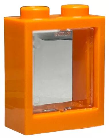 LEGO Alkatrészek 60592c01c4 - LEGO narancssárga ablakkeret 1 x 2 x 2 méretű, átlátszó üveggel