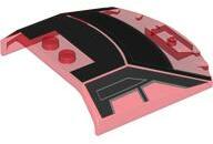 LEGO Alkatrészek 65633pb11c17 - LEGO átlátszó piros szélvédő 6 x 6 x 1 1/3 méretű, fekete ablakkeret és tető mintával. LEGO Építési útmutató kódszám: 6405183