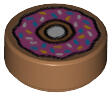 LEGO Alkatrészek 98138pb021c150 - LEGO közepesen sötét bőrszínű csempe 1 x 1 méretű, kerek, fánk mintával. LEGO Építési útmutató kódszám: 6117405
