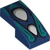 LEGO Alkatrészek 11477pb125c63 - LEGO sötétkék kocka íves, 2 x 1 méretű, sima, fehér szemek és türkiz csík mintával. LEGO Építési útmutató kódszám: 6319781