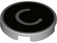 LEGO Alkatrészek 14769pb424c86 - LEGO világosszürke csempe 2 x 2 méretű, fekete háttéren, ezüst C betű mintával. LEGO Építési útmutató kódszám: 6352997