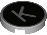 LEGO Alkatrészek 14769pb432c86 - LEGO világosszürke csempe 2 x 2 méretű, fekete háttéren, ezüst K betű mintával. LEGO Építési útmutató kódszám: 6352993