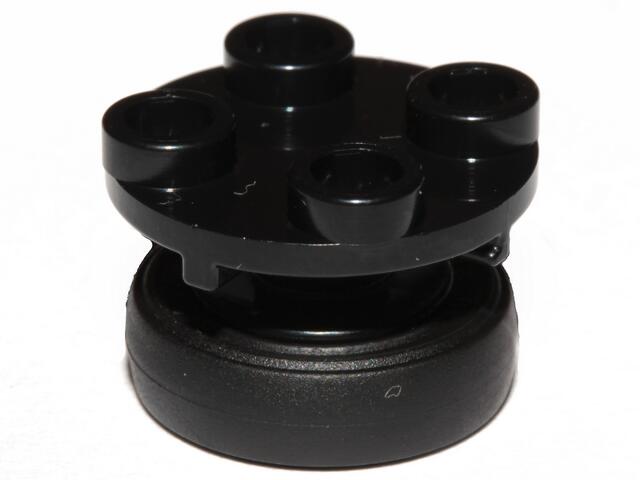 LEGO Alkatrészek 40145c01c11 - LEGO fekete állvány láb 2 x 2 méretű alján nem forgó kerékkel.