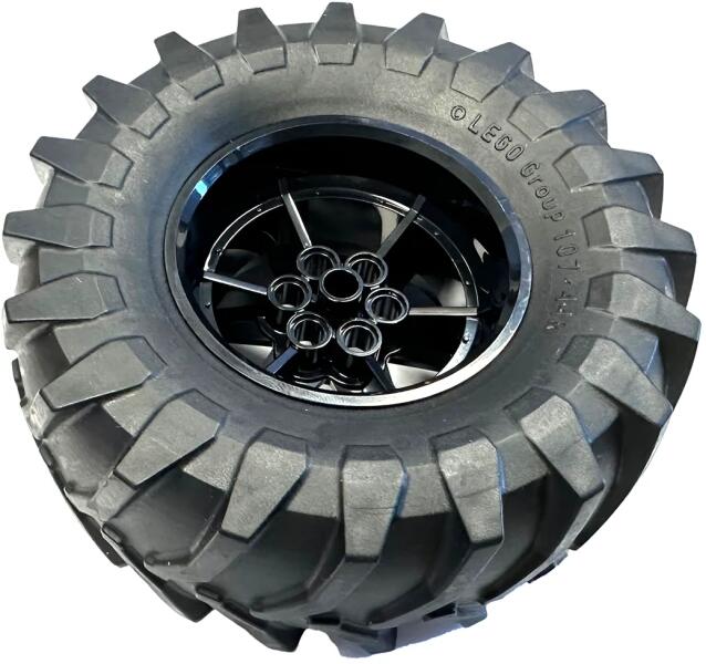 LEGO Alkatrészek 15038c05c11 - LEGO fekete technic kerék felni 34mm átmérőjű, 6 pin lyukkal, 107x44R gumival