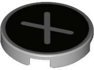 LEGO Alkatrészek 14769pb445c86 - LEGO világosszürke csempe 2 x 2 méretű, fekete háttéren, ezüst X betű mintával. LEGO Építési útmutató kódszám: 6352996