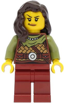 LEGO - vik041 - LEGO Minifigura - női viking harcos, sötétbarna haj.
