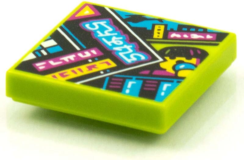 LEGO Alkatrészek 3068bpb1600c34 - LEGO lime csempe 2 x 2 méretű, egymáson levő magazinokkal és egy énekes mintával.